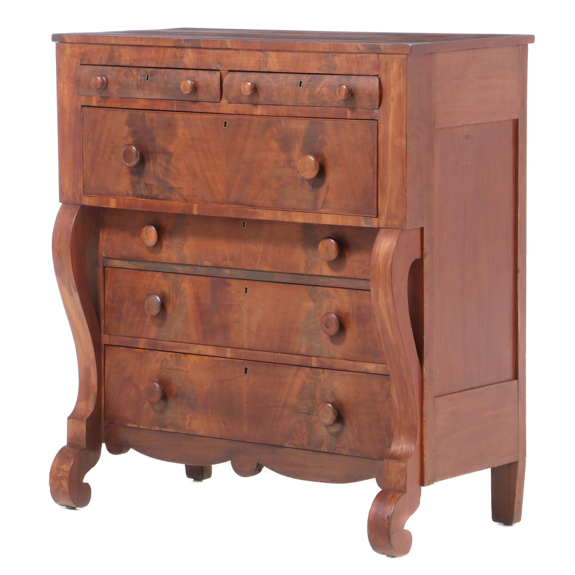 Antique American Empire Flaming Mahogany Chest Dresser With