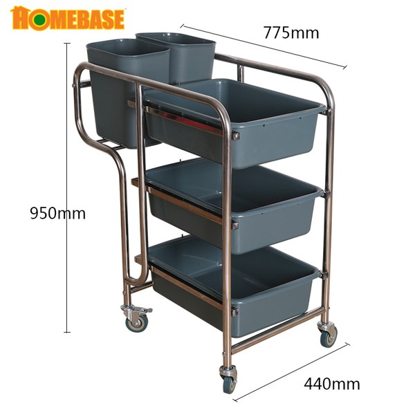 Homebase Stainless Steel 3 Tier Dish Collection Cart Trolley With