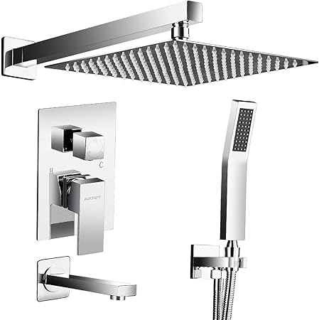 Auktopt Rainfall System With Tub Spout For Bathroom Wall Mounted